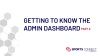 The Admin Dashboard, located in the center of the screen lets you quickly view your registration numbers, revenue, outstanding balances, shopping cart information, team information, fan wear revenue, and email stats.
